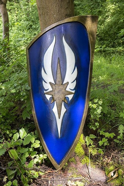 Los elfos van a la guerra contra los enanos y, como combatiente de primera línea, se espera que lleves un escudo con la heráldica de tu ciudad. Sois un pueblo orgulloso y, como tal, vuestro uniforme y armamento están en excelentes condiciones. Llevando tu escudo elfo azul a la batalla, dependiente de ti defender a tus expertos arqueros de los brutales ataques de los enanos. Son poco elegantes y torpes, y tiene la intención de retenerlos fácilmente con algunas maniobras inteligentes. DETALLES El Escudo Elfo Azul de Epic Armory es un gran escudo de 120 cm de largo inspirado en los escudos históricos de cometas y torres, pero con un toque elfo. Un campo azul pintado a mano en el escudo proporciona un gran contraste con la heráldica alada blanca y dorada. El borde está detallado para parecerse a una madera dorada suave, curvada y elegante para combinar con la gracia natural de los elfos. Use este Elf Shield vertical, horizontal o diagonalmente con el uso de un agarre en T versátil en la espalda, asegurado a través de espuma EVA dura para un agarre confiable y sólido hecho para durar. Siéntase seguro de que este protector de látex resistirá el abuso continuo de un LARP con un mantenimiento regular de látex. INSPIRACIÓN La esquina superior curva es una forma simplificada de bouche, que mejora la vista del caballero. Los elfos fueron originalmente una creación de la mitología y el folclore germánicos. Los elfos han sido tratados una criatura mágica con una belleza sobrenatural, pero esta definición ha variado a lo largo de la historia. Los escritos del siglo XX de JRR Tolkien sobre el "Elfo de la Tierra Media" han influido en la forma en que se ve a los elfos hoy en día en el género de alta fantasía. +5134 Reseñas