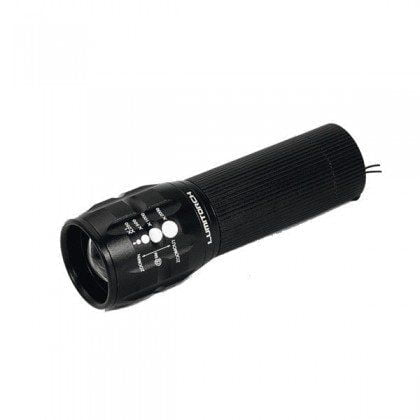 Linterna zoom LED CREE 3W 120 lumens de intensidasd. Funciona con 3 pilas AAA incluidas en el precio.