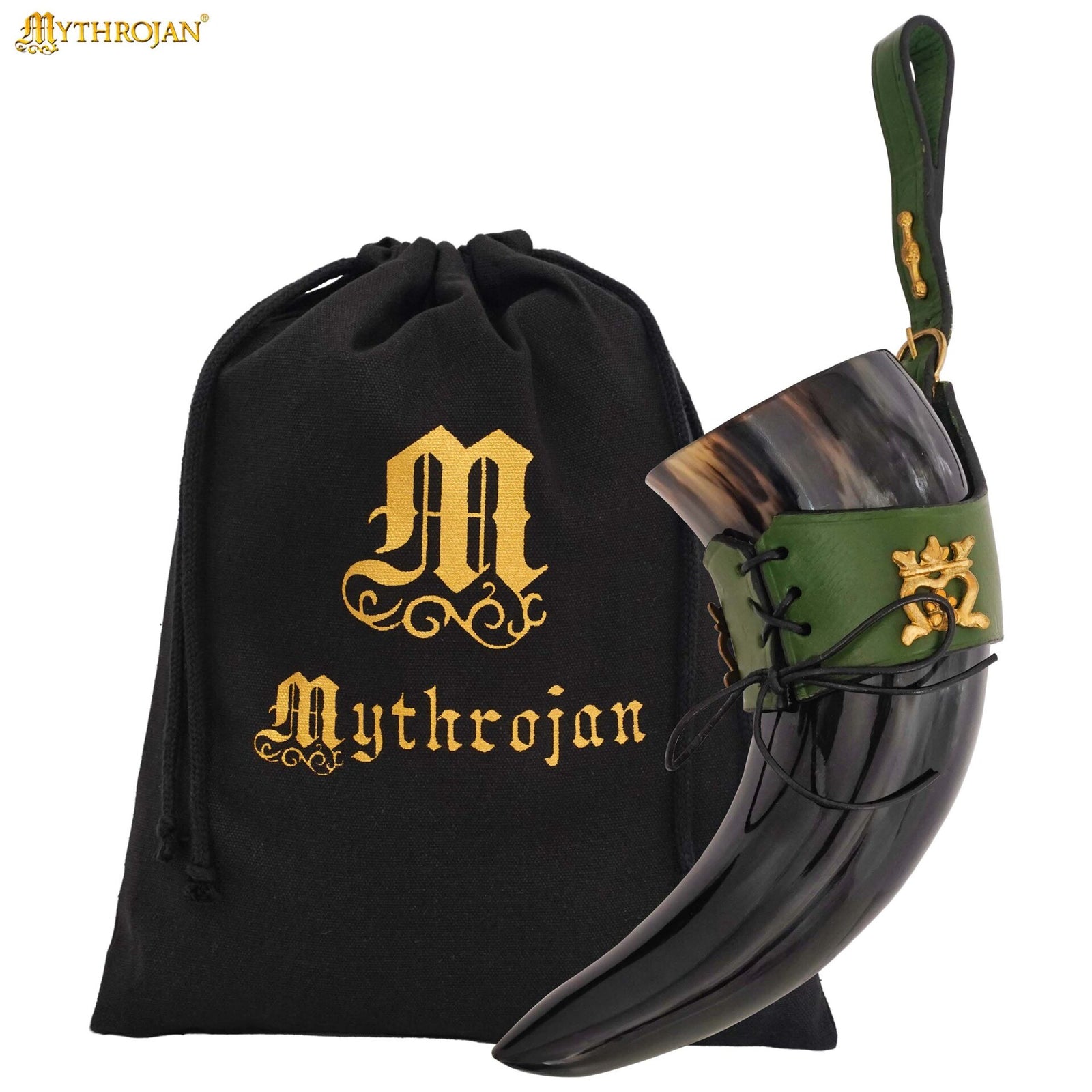 Mythrojan The Elegant Lady 250 Ml Cuerno Vikingo para Beber con Funda de Cuero Verde