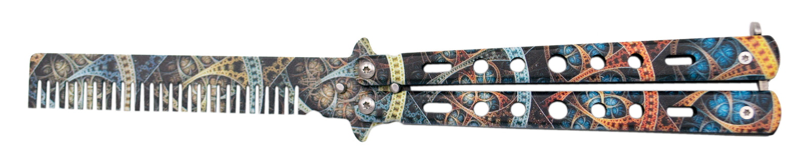 Navaja de abanico Third K3101 hoja de acero 420 estilo peine con imprimación 3D de engranajes de reloj de 10 cm, mango de acero inox con imprimación 3D de engranajes de reloj. Ref. K3101