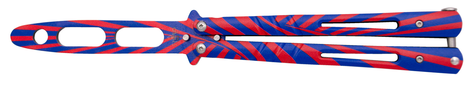 Navaja de abanico de práctica Third K3103 hoja de acero 420 con agujeros acabado con imprimación en Azul y Grana de 10 cm sin corte, mango de acero 420 con imprimación de en Azul y Grana. Ref. K3103
