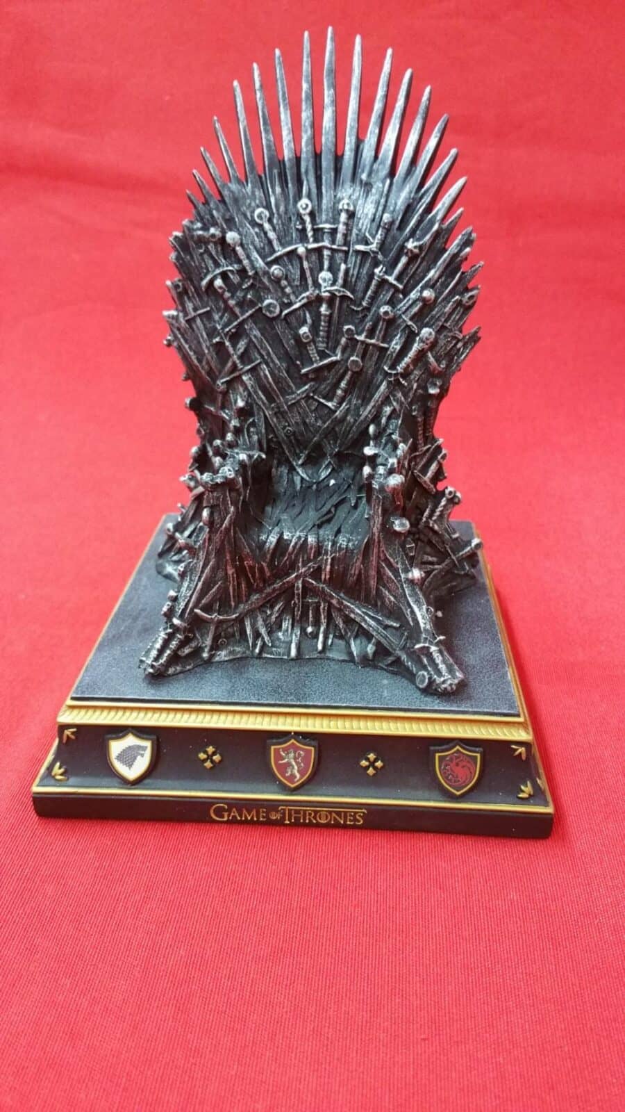El soporte de libros del Trono de Hierro oficial NN071 es un objeto decorativo que sorprenderá tanto a los amantes de la serie como a los coleccionistas de objetos únicos y originales. Los detalles están muy cuidados, lo que hace que se parezca al trono original al que estamos acostumbrados a ver en las escenas más icónicas de la serie.