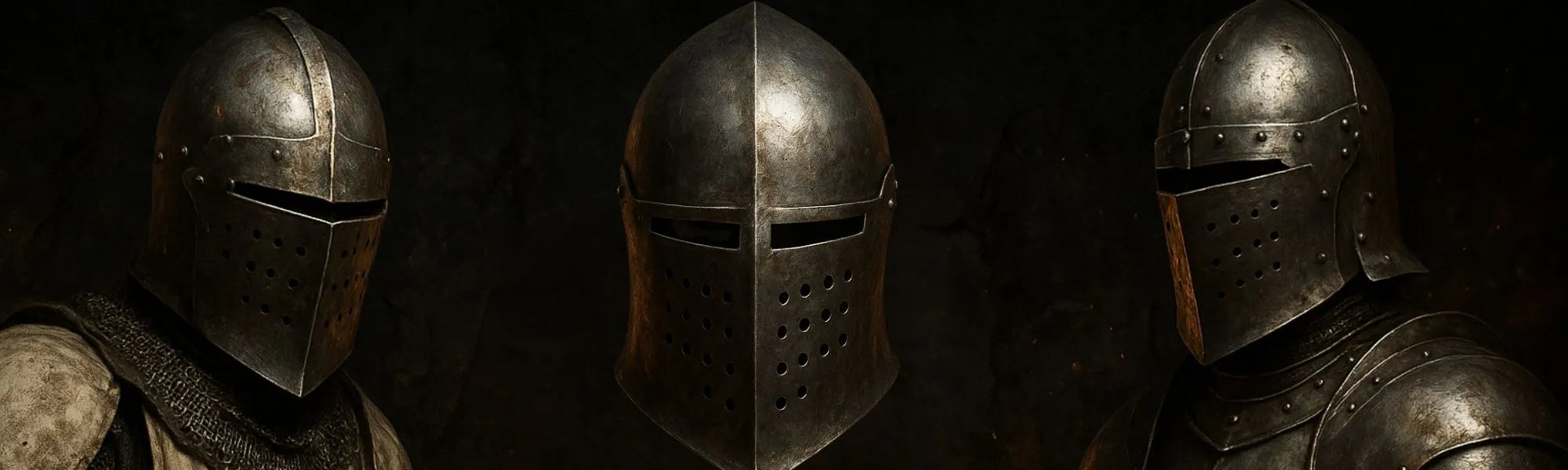 Protegen la región superior de un guerrero mediante el cubrimiento de la cabeza y el rostro. Algunos incluso previenen accidentes en el cuello de posibles ataques. Está claro que si vas a realizar actos realistas de recreación, ya sea orientada a representación o a combate, esta colección te interesa y mucho (no queremos tener un accidente verdad?)