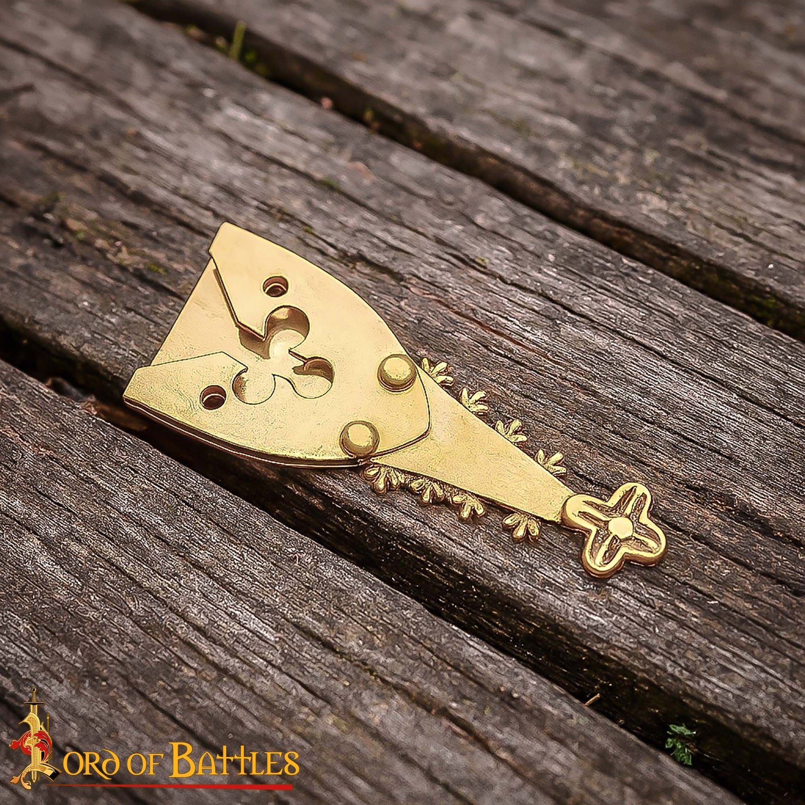 Chape de Cinturón de Latón Renacentista con Motivo Trébol - Guarnición Medieval para Cinturón