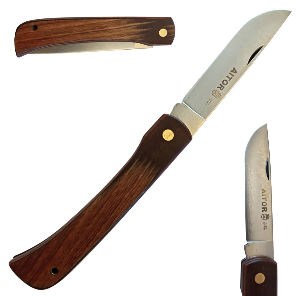 La Navaja Aitor Pastor I es una pieza clásica y funcional que refleja la calidad y el diseño característico de la marca Aitor. Fabricada con hoja de acero inoxidable MOVA con acabado pulido a espejo, ofrece un corte limpio y duradero, ideal para tareas de campo, camping o uso cotidiano.