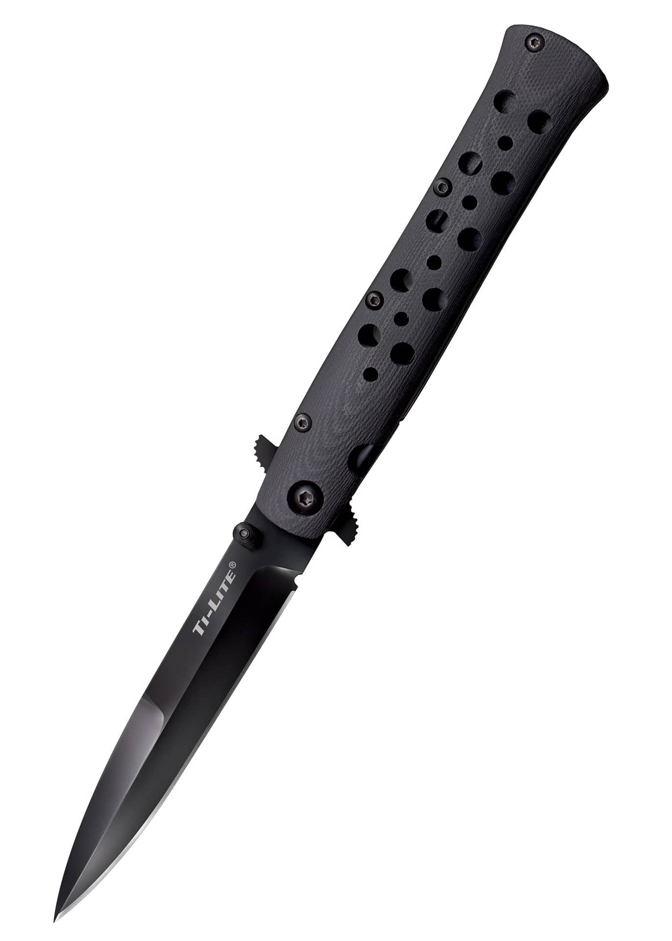 Para una máxima resistencia y seguridad, Cold Steel® ha equipado el Ti-Lites® con cerraduras de revestimiento (bloqueo de resorte lateral) hechas de acero inoxidable, que en pruebas internas pudieron soportar un peso de más de 66 kg (145 lbs.) .