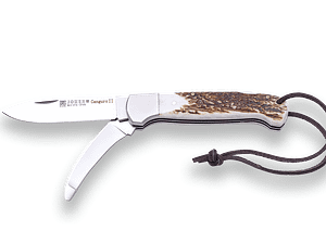 NAVAJA MULTIUSOS JOKER CANGURO II, HOJA ACERO MOVA Y DESOLLADOR, CACHAS ASTA DE CIERVO, VIROLA INOX NC127