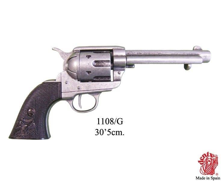 Impresionante réplica de un Revólver Cal. 45 Peacemaker 5½ , diseñado por S. Colt, USA 1873. Es de metal, fabricado en España por Denix con materiales de calidad