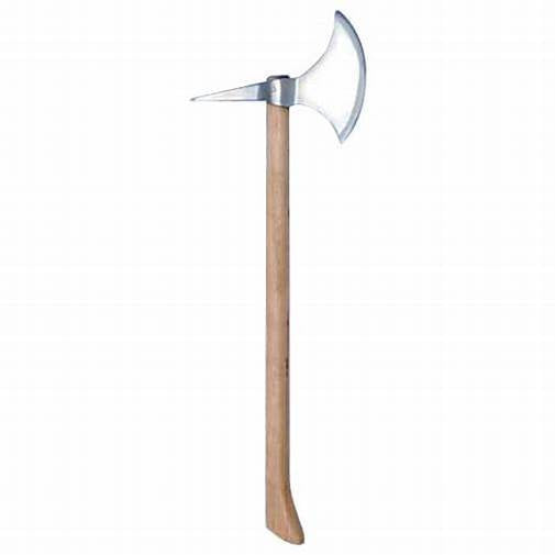 El hacha es casi tan antigua como la maza. Las cabezas del hacha en metal fueron los primeros trabajos manuales que se hicieron durante la Edad del Cobre. Con toda su historia, es fácil entender por qué un guerrero medieval escogería un buen hacha para la batalla. Este hacha, de alrededor del año 1100, tiene un pico que aumenta su efectividad como arma de guerra. La cabeza de acero de esta hacha de una mano se fija a un mango de madera dura que está curvada al final.