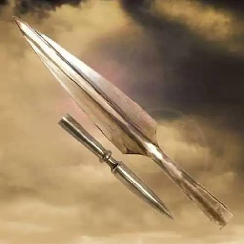 Una punta de lanza y un casquillo para la parte trasera de una lanza de 3cm de diámetro de asta.