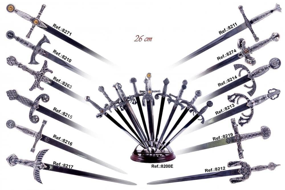Una colección de doce abrecartas de Marto, a saber: Jinetes del apocalipsis, Americano, Bárbaro, Boabdil, Carlomagno, Carlos V, Excalibur, Gran capitán, Masónico, Romano, Salomón, San Fernando, Templario, Tizona y Vikingo, todos disponibles por separado en la tienda.