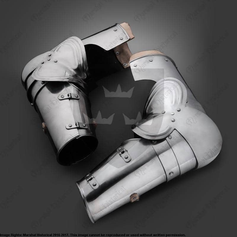 Estos brazos de armadura del siglo XV con codal redondo y navaja retallada, podrían ser un excelente ejemplo de brazos italianos del los años 1400 y 1500. Los brazos de armadura son una protección flexible y versátil que puede ser combinada con muchas piezas distintas para una gran variedad de posibilidades.