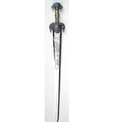 El uso de materiales de alta calidad en la fabricación de esta espada es evidente al sostenerla. El acero inoxidable de primera calidad proporciona durabilidad y resistencia a la corrosión, lo que significa que esta espada se mantendrá en excelentes condiciones durante muchos años. La empuñadura acabada en plata y latón envejecido le da ese toque final de autenticidad y elegancia.