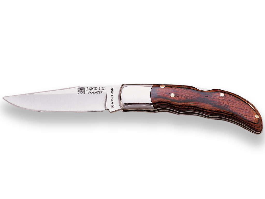 Navaja Artesanal Deportiva Con Ranura Dedos Virola Cachas De Madera Roja Y Hoja De 7,5 Cm.