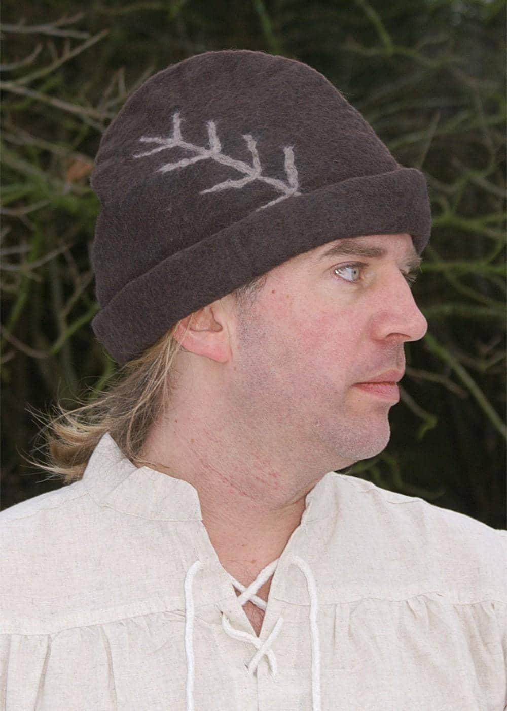Bonito Sombrero medieval rústico hecho de fieltro de lana de oveja