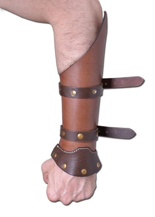 Esta muy decorativos hechos de brazales de espesor, ofrecer protección de piel de vaca marrón para los antebrazos, y son ideales para LARP, vestuario, etc. Las correas de cuero con remaches con hebillas de latón permiten el ajuste de tamaño individual.