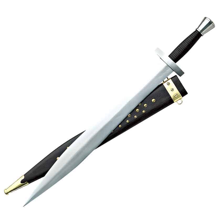 La hoja de esta espada está hecha de acero al carbono, lo que la convierte en una de las mejores armas de la época. Además, el puño de madera está cubierto con cuero para brindar un agarre cómodo y seguro. Además, esta espada viene con una funda de madera forrada con cuero, lo que la hace fácil de transportar y mantener protegida.