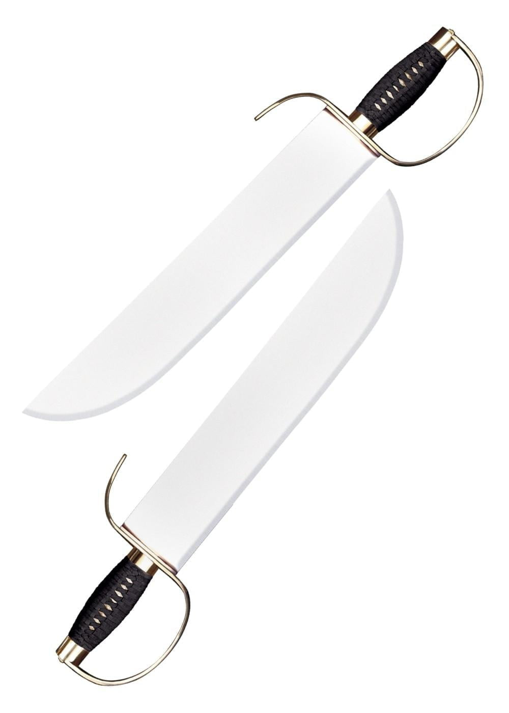 Los pronunciados guardias en forma de D están diseñados para desviar y atrapar armas enemigas, y el largo quillon delantero proporciona una mayor protección. Los hermosos mangos de madera dura están cubiertos con un cordón de seda trenzado que brinda un agarre cómodo y seguro, lo que las convierte en una herramienta ideal para la práctica de artes marciales.