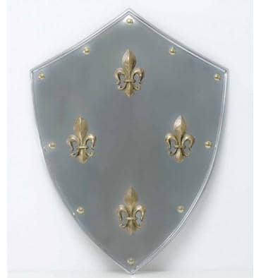 Impresionante escudo medieval Flor de lis con acabado rústico envejecido.