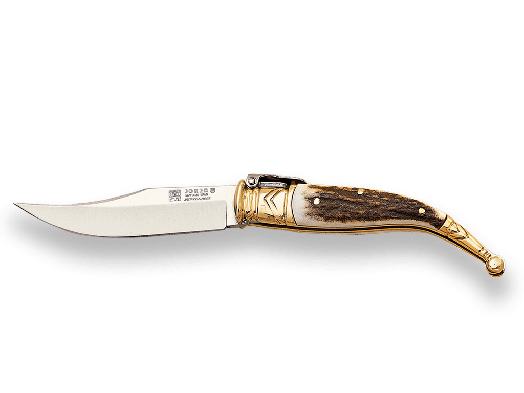 Navaja Clásica Sevillana Con Virola De Latón Puño Asta De Ciervo Hoja 7,5 Cm.