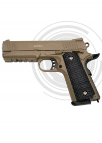 Pistola Galaxy G25D Tipo Colt 1911 Warrior - Desert - Pistola Muelle Calibre 6 mm Aleación de metal y zinc - Energía 0.29 Julios - Velocidad de disparo 77m/s - 253 FPS. Ref:G25D
