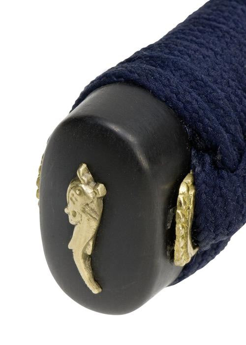 Pero las características del Wakizashi John Lee Imori no se limitan solo a la hoja y la empuñadura. La espada está adornada con detalles exquisitos de Tsuba, Fuchi, Kashira y Menuki, que muestran un tritón de oro. Estos detalles hacen que el Wakizashi John Lee Imori sea una espada elegante y atractiva, que impresionará a cualquier observador.