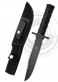 Cuchillo de supervivencia 086N con hoja de acero de 17 cm, mango de aluminio en negro, kit de supervivencia y funda de nylon.