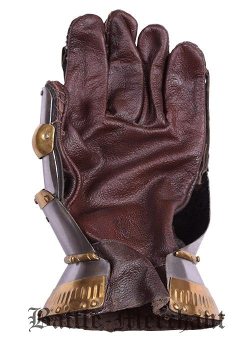 Los guanteletes son adecuados para la pelea show. Están hechos de acero de aproximadamente 1,6 mm de espesor. Además, las partes de acero con hoja de latón están decorados y reforzados.