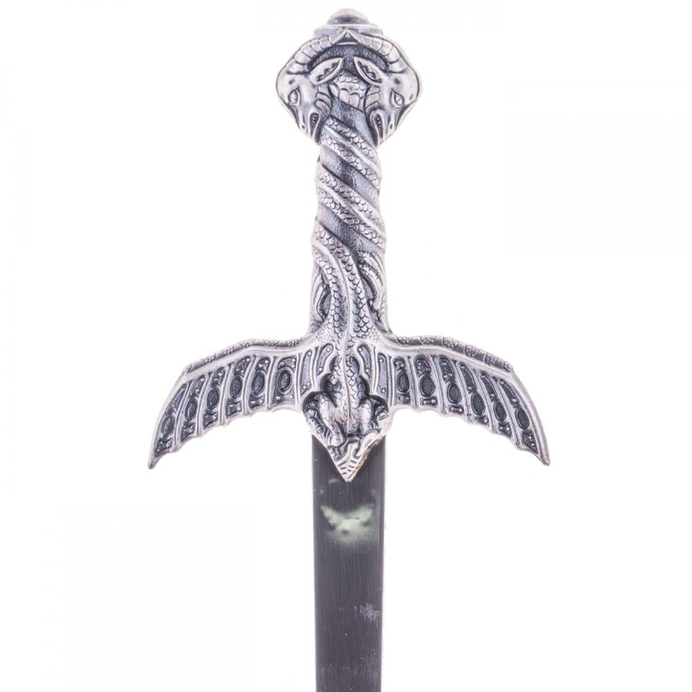 Este abrecartas de estilo bárbaro de la casa Marto está hecho de acero y la empuñadura, acabada en plata