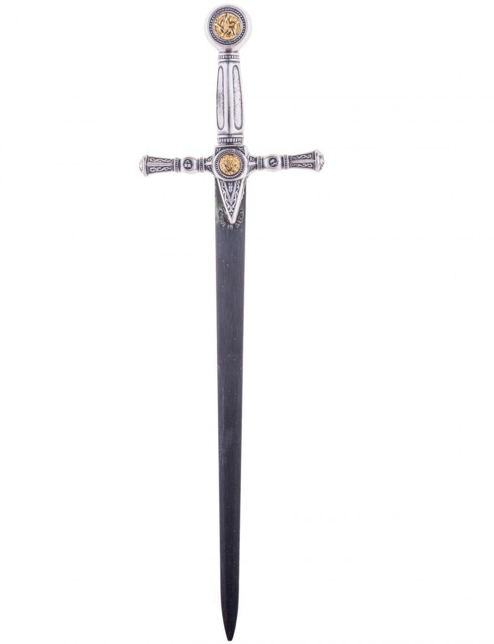 Un abrecartas hecho en acero con una cantidad aceptable de símbolos masónicos.