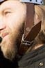 Asegure el casco secreto apretando la correa de cuero debajo de la barbilla, manteniendo el casco en su lugar. Hecho de acero dulce de 1 mm de grosor y correas y accesorios de cuero de grano superior, esta pieza de armadura está construida para resistir el abuso de un LARP o una recreación con el cuidado habitual de la armadura de cuero y metal.