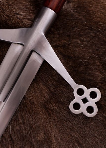 Con una longitud total de aproximadamente 123 cm y una longitud de hoja de aproximadamente 92 cm, esta espada es de gran tamaño y tiene un peso aproximado de 2,2 kg. El grosor de la hoja es de aproximadamente 4 mm y los bordes de corte no se afilan. Cabe destacar que el acero utilizado no está libre de óxido y puede tener ligeros rastros de corrosión. Por este motivo es recomendable su conservación con un aceite universal adecuado para la conservación de productos de acero.