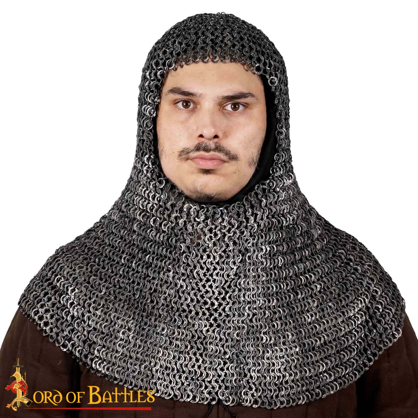 Cofia de Cota de Malla - Anillo Plano Remachado de 9 Mm, Acero Inoxidable de Calibre 18 - Ideal para Larp, Cosplay y Disfraces de Cine
