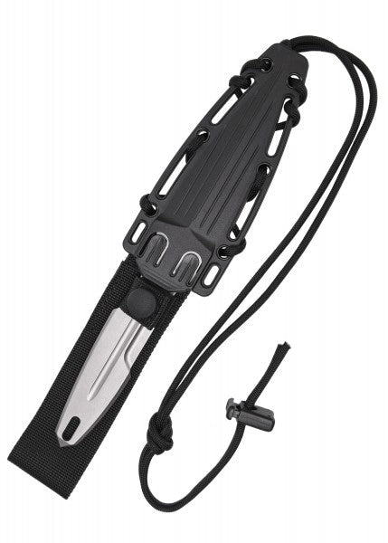 El pomo del cuchillo tiene una trituradora de cráneos en forma de diamante, lo que lo hace muy útil en situaciones de emergencia, mientras que el perfil de la hoja crea un diseño ergonómico que garantiza un agarre cómodo y seguro. La funda de nylon estampada se ha diseñado para ser extremadamente plana y estrecha, lo que permite una gran versatilidad en cualquier situación, ya que puede usarse con clip de cinturón, ULTICLIP o clip de malicia.