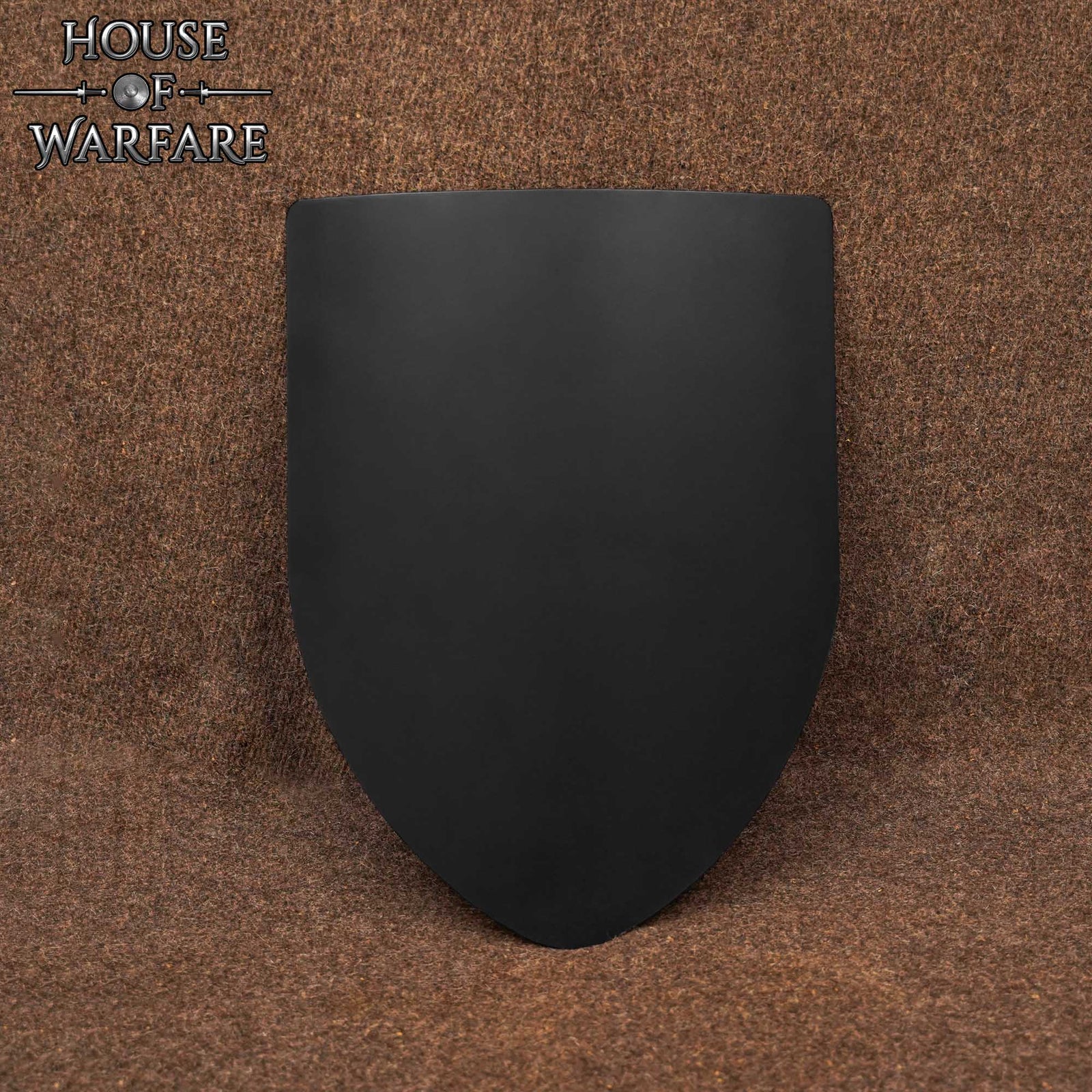 Forjado en acero dulce de alta calidad, el escudo proporciona una sólida protección para el combate de recreación, sparring y juegos de rol de acción en vivo. Su limpio acabado en negro mate le proporciona una base versátil lista para exhibir su heráldica, emblema personal o cualquier diseño pintado.