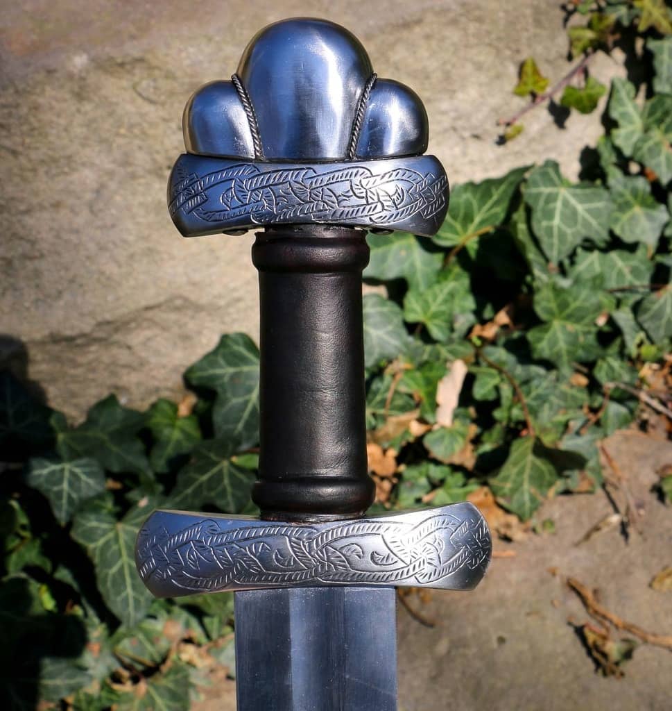 Espada vikinga de colección basada en la espada Gjermundbu, Noruega, siglo X, con pomo decorado con alambre de plata. Una espada de élite para coleccionistas de la más alta calidad.