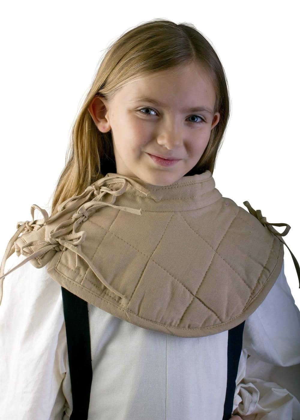 Gambesón Collar con relleno de poliéster. Se puede usar individualmente como un complemento decorativo para la ropa o debajo de la armadura o cota de malla para mayor protección durante una pelea. Nidos de cordones de algodón montados lateralmente para una adaptación óptima al cuerpo y su bajo peso, es cómodo de llevar. Se adapta a cualquier personaje LARP o mercado medieval.