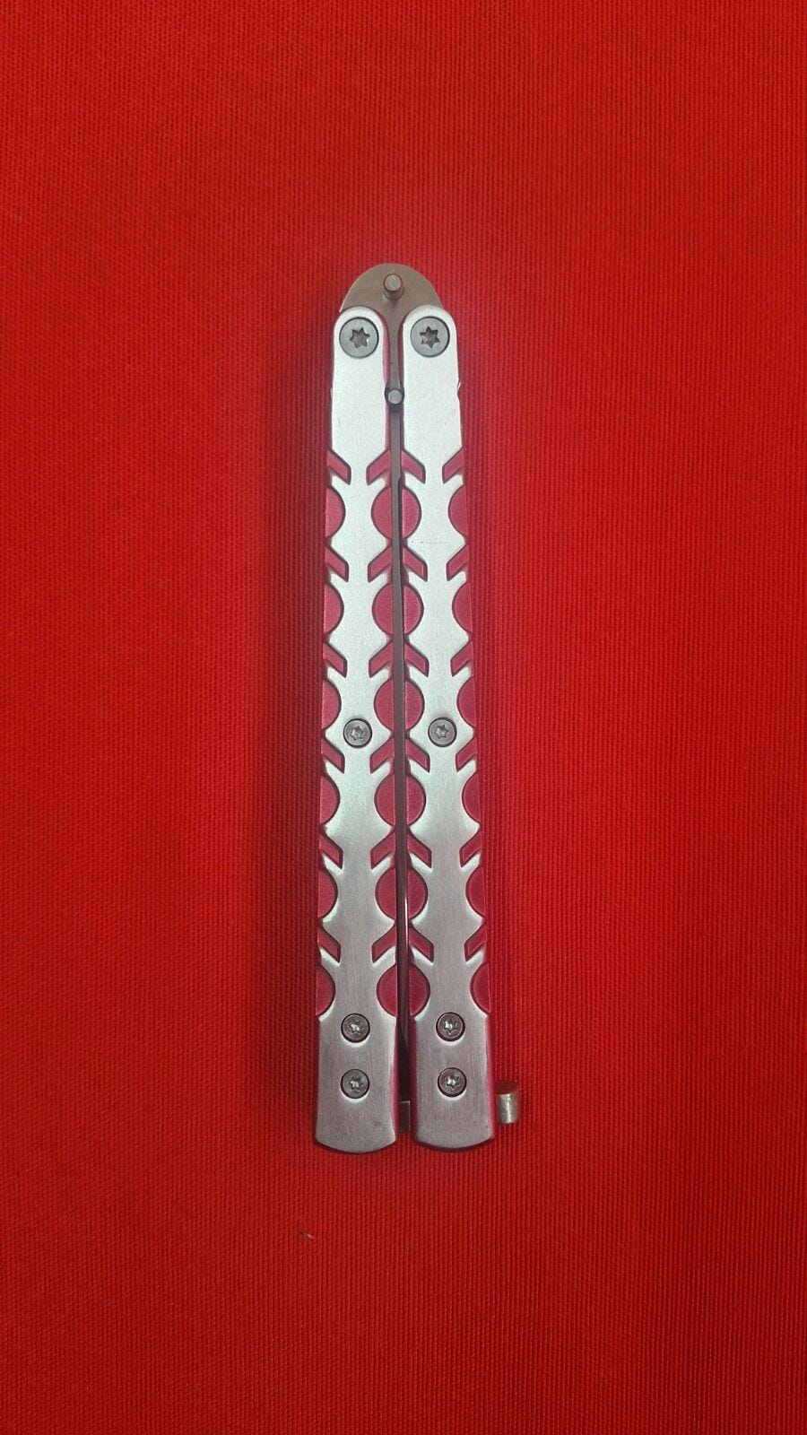 Impresionante navaja abanico o mariposa de acero inoxidable de gran calidad con mango también de acero inoxidable.