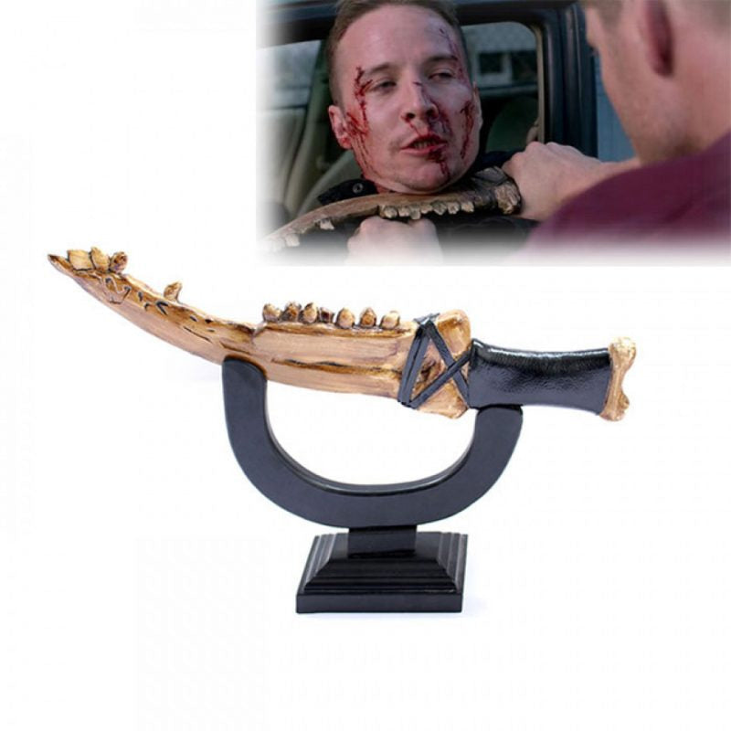 La primera espada es un arma hecha de la quijada de un burro que una vez estuvo asociada con la marca de Caín. La marca impulsa la hoja de alguna manera y, si la sostiene el portador puede matar a cualquier ser conocido. La hoja es tan poderosa que Crowley una vez la llamó "el arma más peligrosa del planeta". La hoja está hecha de resina y mide 44 cm de largo.