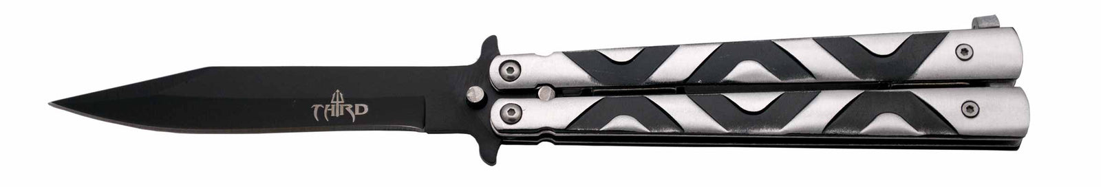 Navaja de abanico Third 12313 con hoja de acero inox color negro de 11.5 cm, mango de aluminio con detalles negros. Ref. 12313
