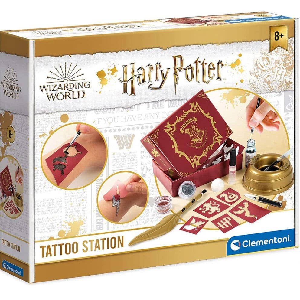 Edad: +8 años. Un escritorio especial con todo lo necesario para hacer fantásticos tatuajes de Harry Potter! Contiene brillo, plantillas, pincel y lápices para hacer tatuajes mágicos y experimentar el hechizo de Harry Potter en su piel.