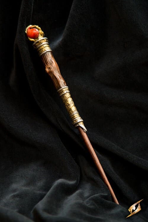 La varita marrón Durentius de Epic Armoury es una varita de 36 cm hecha a mano con la madera del árbol marchito y la garra petrificada de un gallo. Se dice que la gema naranja incrustada en la garra de la varita proviene de la luna, profundamente imbuida de magia. Esta varita pertenece a las manos de los practicantes más diligentes: los perdedores tenaces y las mentes geniales.