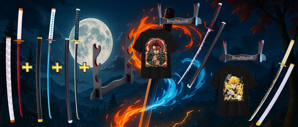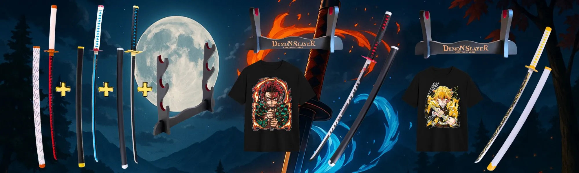Cada pacote foi cuidadosamente concebido para captar a essência das suas personagens favoritas. Inclui três réplicas de katanas, disponíveis em bambu e aço , perfeitas para exibir ou para completar o seu cosplay. Além disso, cada conjunto vem com uma elegante vitrina para que possa exibir as suas espadas com orgulho.