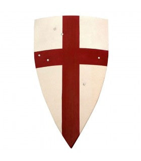 Este escudo Crusader de alta qualidade é feito de madeira com formato curvo.