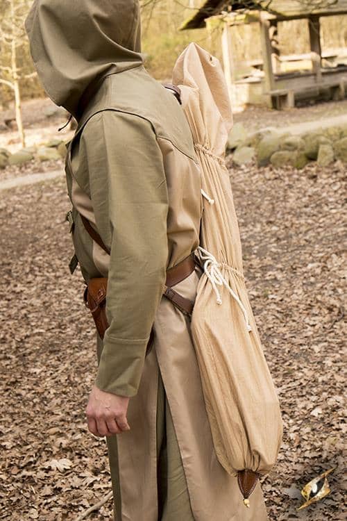 Prenda suas armas com segurança dentro da bolsa de espadas amarrando os três cordões de algodão em volta delas, evitando que elas se movam dentro da bolsa enquanto você se move. Um remendo de couro de flor integral foi adicionado ao fundo da bolsa para adicionar durabilidade extra em comparação com lâminas de espada de látex. Combine este acessório com uma grande variedade de equipamentos Epic Armory e em vários estilos de personagens.