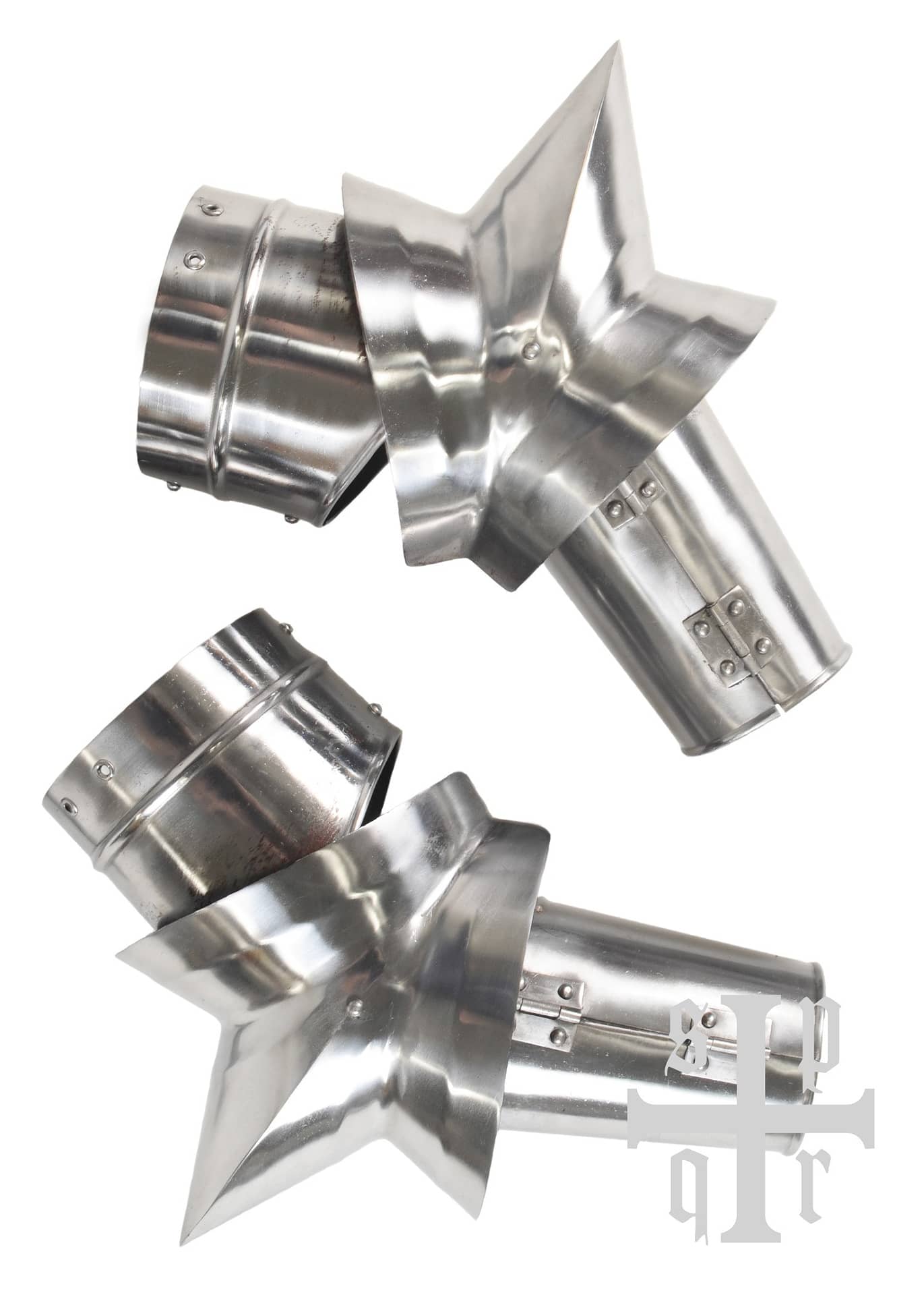 Esta réplica móvel e portátil da armadura medieval tardia é baseada em um original alemão do século XV (ca. 1465). É fabricado em aço de 1,5 mm e enegrecido por dentro para melhor proteção contra corrosão. Protege os antebraços, cotovelos e antebraços.