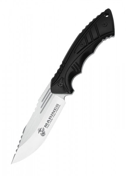 A faca de campo oficialmente licenciada do USMC Combat Fighter está equipada com uma lâmina afiada e completa feita de