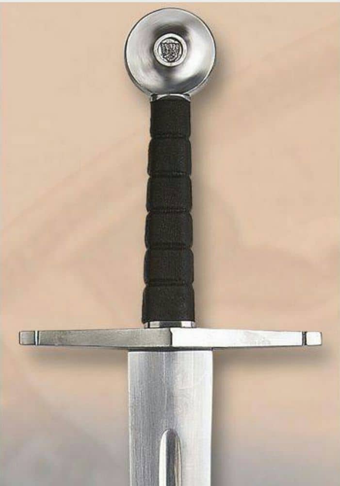 A espada Hattin distingue-se pela sua guarda reta e pomo redondo, conferindo à lâmina uma aparência robusta e bem equilibrada. Além disso, é fabricado em aço carbono, o que lhe confere grande durabilidade e resistência para suportar os combates mais intensos. A empunhadura metálica e o botão rosqueado permitem uma empunhadura confortável e segura, proporcionando melhor controle durante o combate.