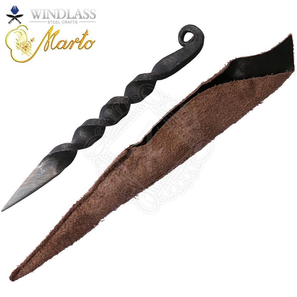 Punhal forjado à mão em uma única peça de ferro. Adaga pequena mas eficaz, perfeita para ocultação como arma de reserva, ideal para o interior do corpete de uma senhora.