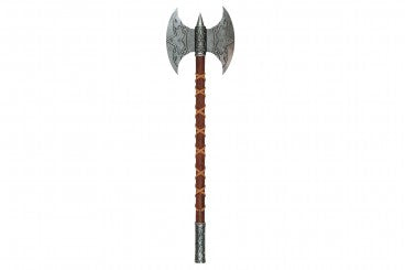 Machado decorativo Viking com cabeça de dois gumes e cabo de madeira com lindo trançado de couro. Peça de decoração, não tem borda. Tamanho 71 cm. Peso 1380 gr. Feito de metal e madeira. Fabricado na Espanha pela Denix.